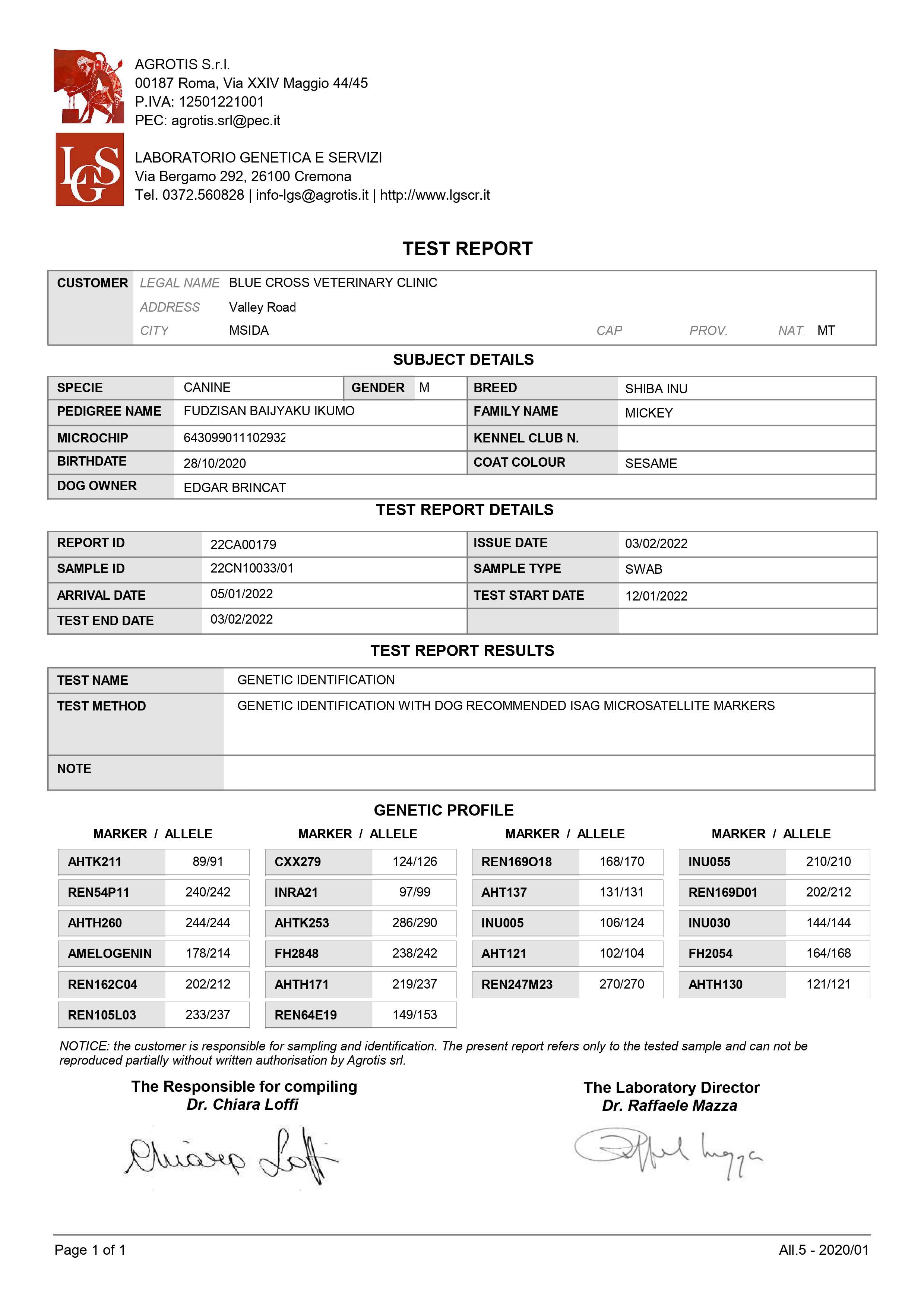 CERTIFIED SESAME COAT COLOUR CARRIER GENETICS.